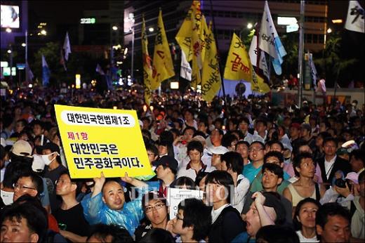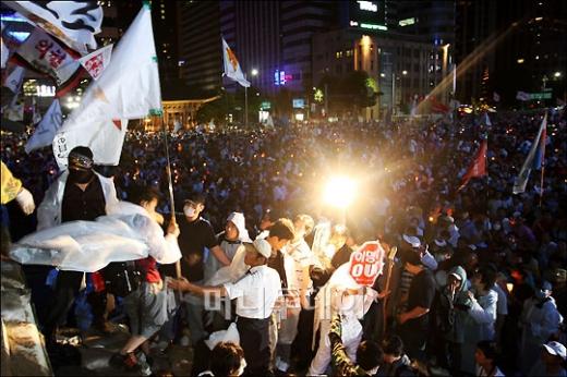 ↑전경버스위로 올라갔던 시민들이 내려 오고 있다. 22일 새벽 서울 광화문 네거리에서 열린 미국산쇠고기 수입반대 촛불집회에 참가한 시민들이 구호를 외치고 있다. 독자들의 PICK! "자습 때 둘이 사라져"...홍서범 아들 불륜, 학생들 잇단 제보 월 700만원 벌어도..."생활비 30만원, 한국인 남편 짠돌이" 8살 차이 장모·사위, 금단의 관계로...회복 불가 외도 사례 "며느리 불륜" 공방에...신혼집에 몰카 설치한 류중일 전 사돈