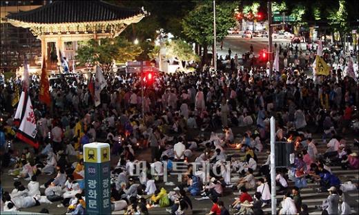 22일 새벽 서울 광화문 네거리에서 열린 미국산쇠고기 수입반대 촛불집회에 참가한 시위대가 잠시 휴식을 취하고 있다. 독자들의 PICK! "친손녀 팔이 그만" 홍서범에 분노한 전 며느리…"'외도 아들' 감싸기" 월 700만원 벌어도..."생활비 30만원, 한국인 남편 짠돌이" 8살 차이 장모·사위, 금단의 관계로...회복 불가 외도 사례 "며느리 불륜" 공방에...신혼집에 몰카 설치한 류중일 전 사돈