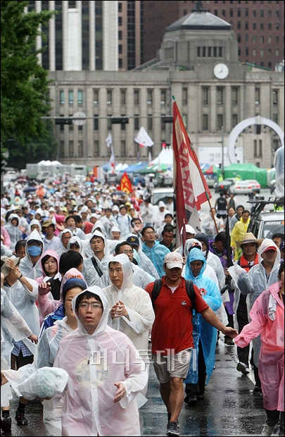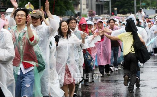 22일 오전 광화문 네거리에서 밤샘시위를 하던 촛불집회 참가자들이 아침비를 맞으며 남대문을 향해 행진을 하고 있다. 시위대는 남대문을 돌아 서울광장에 모여 정리집회를 갖고 해산했다. 독자들의 PICK! "친손녀 팔이 그만" 홍서범에 분노한 전 며느리…"'외도 아들' 감싸기" 월 700만원 벌어도..."생활비 30만원, 한국인 남편 짠돌이" 8살 차이 장모·사위, 금단의 관계로...회복 불가 외도 사례 "며느리 불륜" 공방에...신혼집에 몰카 설치한 류중일 전 사돈