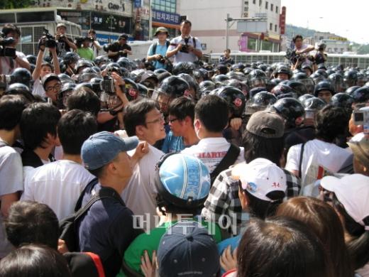 시민들은 연행자를 실은 버스를 막아서며 강력히 저항했으나 오후 4시35분 경찰 수송버스는 출발했고 도로 교통도 재개됐다.