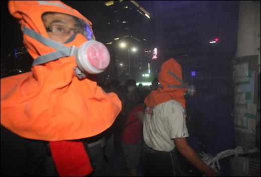 25일 저녁 미국 쇠고기 고시 철회 촉구 촛불시위에서 경찰이 쏘는 소화기에 맞서 시민들이 방독면을 쓰고 대치하고 있다. 독자들의 PICK! 홍서범·조갑경 아들, 아내 임신 중 '여교사와 불륜'…"위자료 배상" 8살 차이 장모·사위, 금단의 관계로...회복 불가 외도 사례 "며느리 불륜" 공방에...신혼집에 몰카 설치한 류중일 전 사돈 이호선 "아내 병원에 집어넣어"...음주 방임한 남편에 충격 조언