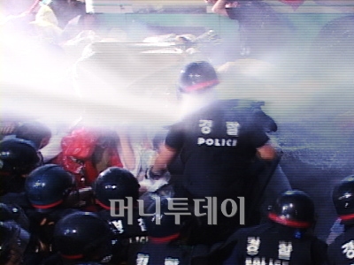 한편, 물대포를 쏘며 시위대를 강제해산 하려던 한 전경이 물대포를 맞고 쓰러져 한동안 정신을 차리지 못하고 기절을 하기도 했습니다.