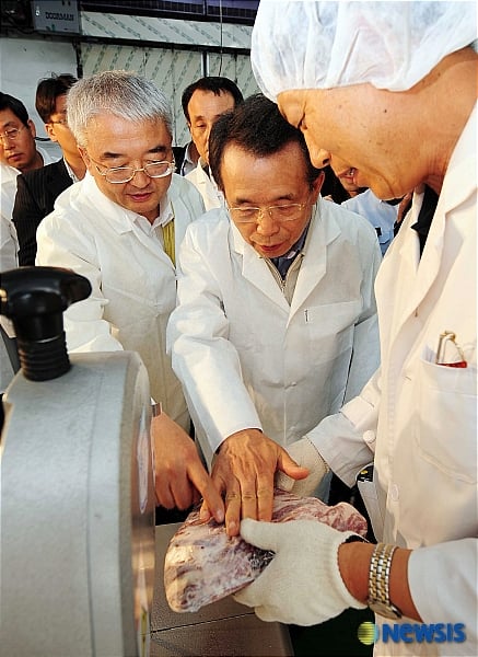 미 쇠고기에 대한 검역이 시작된 27일 경기도 용인의 한 냉장창고에서 한승수(왼쪽 두번째) 총리가 검역과정을 지켜보며 검역원 수의사와 이야기를 나누고 있다. /사진공동취재단 독자들의 PICK! "자습 때 둘이 사라져"...홍서범 아들 불륜, 학생들 잇단 제보 월 700만원 벌어도..."생활비 30만원, 한국인 남편 짠돌이" 8살 차이 장모·사위, 금단의 관계로...회복 불가 외도 사례 "며느리 불륜" 공방에...신혼집에 몰카 설치한 류중일 전 사돈