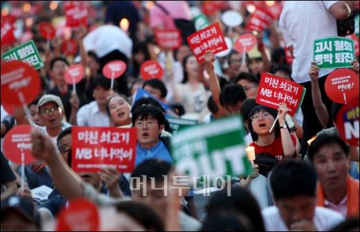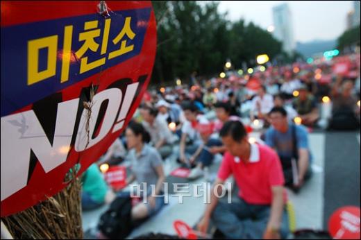 27일 저녁 서울 시청 앞 도로에서 열린 미국산쇠고기 수입반대 촛불시위에 참석한 시위참가자들이 '미친소 NO!'를 외치고 있다. 독자들의 PICK! "자습 때 둘이 사라져"...홍서범 아들 불륜, 학생들 잇단 제보 월 700만원 벌어도..."생활비 30만원, 한국인 남편 짠돌이" 8살 차이 장모·사위, 금단의 관계로...회복 불가 외도 사례 "며느리 불륜" 공방에...신혼집에 몰카 설치한 류중일 전 사돈