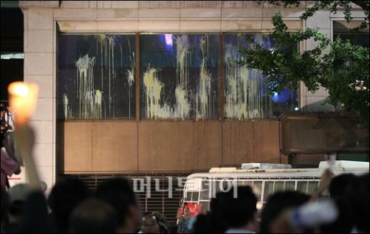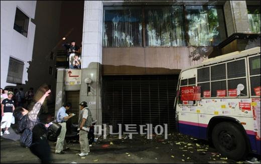 27일 밤 서울 태평로 거리에서 경찰과 대치중인 미국산쇠고기 수입반대 촛불 시위대가 조선일보사 건물인 코리아나호텔에 계란세례를 퍼붓고 있다. 독자들의 PICK! "자습 때 둘이 사라져"...홍서범 아들 불륜, 학생들 잇단 제보 월 700만원 벌어도..."생활비 30만원, 한국인 남편 짠돌이" 8살 차이 장모·사위, 금단의 관계로...회복 불가 외도 사례 "며느리 불륜" 공방에...신혼집에 몰카 설치한 류중일 전 사돈