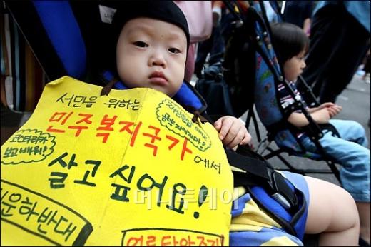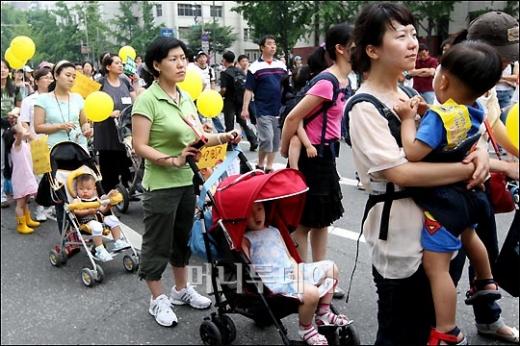 28일 저녁 서울시청 앞 광장에서 열린 미국산 쇠고기 수입반대 촛불집회에 참석한 시민들이 아이를 유모차에 태우고 구호를 외치고 있다. 독자들의 PICK! "자습 때 둘이 사라져"...홍서범 아들 불륜, 학생들 잇단 제보 월 700만원 벌어도..."생활비 30만원, 한국인 남편 짠돌이" 8살 차이 장모·사위, 금단의 관계로...회복 불가 외도 사례 "며느리 불륜" 공방에...신혼집에 몰카 설치한 류중일 전 사돈