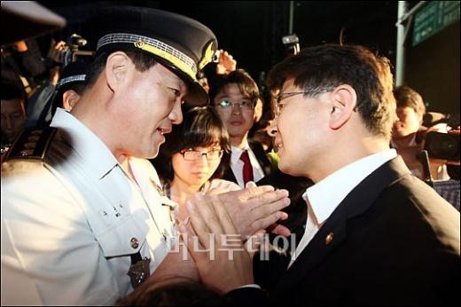 29일 밤 서울 보신각 앞 도로에서 촛불문화재가 진행중인 가운데 우문수 종로경찰서장이 시위대 앞에서 김재윤 통합민주당 의원과 시위대가 점거하고 있는 도로의 2개 차로를 열어 줄 것을 요청하고 있다. 독자들의 PICK! 홍서범·조갑경 아들, 아내 임신 중 '여교사와 불륜'…"위자료 배상" 8살 차이 장모·사위, 금단의 관계로...회복 불가 외도 사례 아내 산후조리원에 있는데...'친구 여친'과 불륜 남편, 성폭행 고소전까지 이호선 "아내 병원에 집어넣어"...음주 방임한 남편에 충격 조언