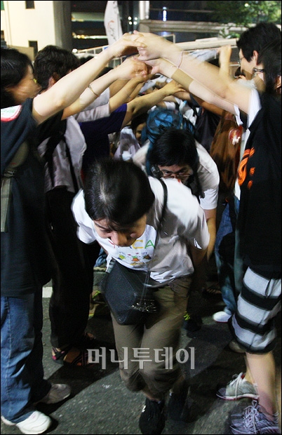 6일 새벽 서울 태평로에서 열린 미국산쇠고기 수입반대 촛불시위에 참석한 시위대가 동굴 만들기 놀이를 하며 시위를 즐기고 있다. 독자들의 PICK! 홍서범·조갑경, '아들 불륜' 사과…"양육비·위자료 빨리 주도록 할 것" 화사, 속옷이 다 보여...과감한 드레스 연출에 '깜짝' 월 700만원 벌어도..."생활비 30만원, 한국인 남편 짠돌이" 이하이 "도끼, 하나뿐인 내 남자" 열애 인정…"두 사람 지금 미국에"