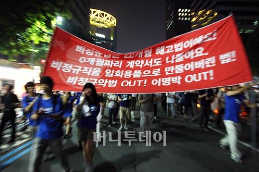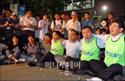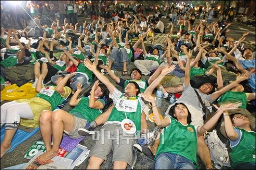 지난 5일 오후 서울 태평로에서 열린 미국산쇠고기 수입반대 촛불시위에 참석한 시위참가자들이 비폭력을 고수하며 경찰과 충돌 없이 6일 오전까지 시위를 이어가고 있다. 독자들의 PICK! 홍서범·조갑경, '아들 불륜' 사과…"양육비·위자료 빨리 주도록 할 것" 화사, 속옷이 다 보여...과감한 드레스 연출에 '깜짝' 월 700만원 벌어도..."생활비 30만원, 한국인 남편 짠돌이" 이하이 "도끼, 하나뿐인 내 남자" 열애 인정…"두 사람 지금 미국에"