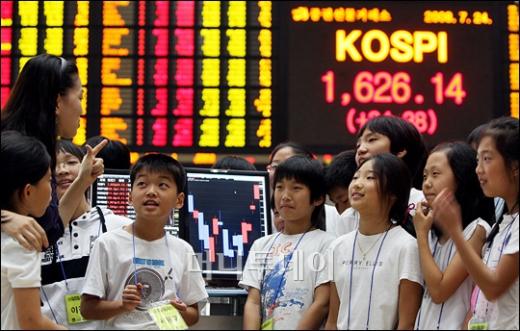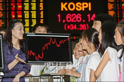 24일 오후 서울 여의도 증권선물거래소를 견학 온 초등학교 학생들이 증권선물거래소 홍보 담당자에게 증권거래에 대한 설명을 듣고 있다. 코스피지수는 24일 전날에 비해 34.38포인트(2.16%) 급등한 1626.14로 장을 마쳤다. 독자들의 PICK! "자습 때 둘이 사라져"...홍서범 아들 불륜, 학생들 잇단 제보 월 700만원 벌어도..."생활비 30만원, 한국인 남편 짠돌이" 8살 차이 장모·사위, 금단의 관계로...회복 불가 외도 사례 "며느리 불륜" 공방에...신혼집에 몰카 설치한 류중일 전 사돈