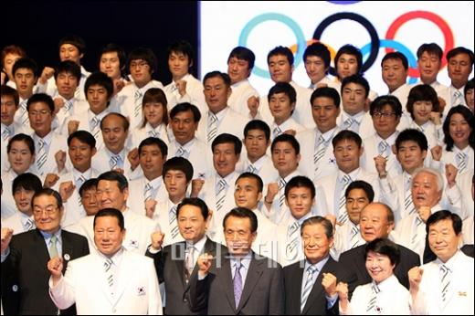 25일 오후 서울 올림픽 홀에서 열린 제29회 베이징 올림픽대회 대한민국 선수단 결단식에 참석한 한승수 국무총리를 비롯한 올림픽 국가대표 선수들이 화이팅을 외치고 있다. 독자들의 PICK! 5년 전 사라진 걸그룹 리더 충격 폭로…"빚쟁이라며 인터넷방송 시켜" '40억 건물주' 이해인 "대출만 32억…이자 계산하다 못 자" 토로 친구 아내와 바람난 남편...월 300만원 받고 방 잡아준 친구 배우 정은우, 돌연 사망 비보…하루 전엔 SNS에 장국영 사진