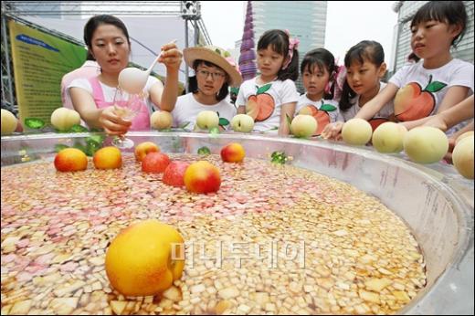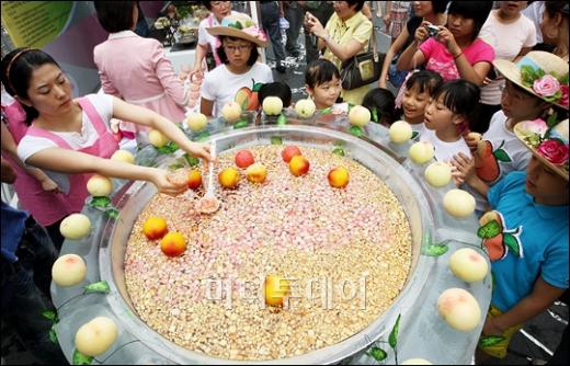 28일 오전 서울 청계광장에서 농협 주최로 열린 2008 복숭아데이 행사에 참여한 시민들이 도심 한복판에 심어진 복숭아나무를 바라보고 있다. 복숭아는 알칼리성 식품으로서 면역력을 키워 주고 식욕을 돋구어 여름철 과일로 제격이다. 그 외 발육 불량과 야맹증에 좋으며 장을 부드럽게 하여 변비를 없애고 어혈을 풀어 주는 기능도 갖고 있다. 독자들의 PICK! 5년 전 사라진 걸그룹 리더 충격 폭로…"빚쟁이라며 인터넷방송 시켜" '40억 건물주' 이해인 "대출만 32억…이자 계산하다 못 자" 토로 친구 아내와 바람난 남편...월 300만원 받고 방 잡아준 친구 배우 정은우, 돌연 사망 비보…하루 전엔 SNS에 장국영 사진