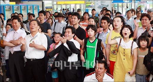 2008 베이징 올림픽 자유형 200m 준결승전이 열리는 11일 오전 서울역에서 시민들이 '마린보이' 박태환의 경기를 지켜보다 아시아 신기록으로 결승에 진출하자 기뻐하며 환호 하고 있다. 독자들의 PICK! "자습 때 둘이 사라져"...홍서범 아들 불륜, 학생들 잇단 제보 월 700만원 벌어도..."생활비 30만원, 한국인 남편 짠돌이" 8살 차이 장모·사위, 금단의 관계로...회복 불가 외도 사례 "며느리 불륜" 공방에...신혼집에 몰카 설치한 류중일 전 사돈