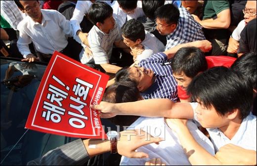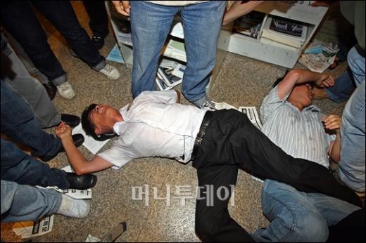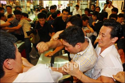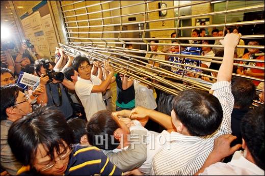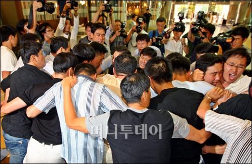 27일 오전 서울 여의도 KBS본관에서 KBS 이병순 신임 사장의 취임식이 진행됐다. KBS직원들이 李 사장의 출근길을 저지 하던 중 청원경찰들과 격렬한 몸싸움이 벌어졌다. 독자들의 PICK! "자습 때 둘이 사라져"...홍서범 아들 불륜, 학생들 잇단 제보 월 700만원 벌어도..."생활비 30만원, 한국인 남편 짠돌이" 8살 차이 장모·사위, 금단의 관계로...회복 불가 외도 사례 "며느리 불륜" 공방에...신혼집에 몰카 설치한 류중일 전 사돈