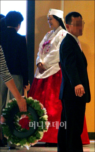 현재 임신 6개월로 알려진 김희선은 한복 차림으로 등장, 여전히 아름다운 모습을 뽐내며 이목을 집중시켰다. 김희선은 남편인 박씨와 동행, 식장에 들어섰으며 결혼식보다 1시간 30분 앞서 도착했다.