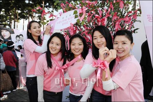 12일 오전 서울 상암월드컵경기장 평화의 공원에서 열린 '2008 핑크리본 사랑마라톤대회'에 참가한 도우미들이 여성의 건강과 가슴의 자유를 상징하는 '핑크리본'을 소망나무에 매달고 있다. '2008 핑크리본 사랑마라톤대회'는 여성 건강과 유방암 예방을 위해 한국유방건강재단이 주최하고 주식회사 아모레퍼시픽이 주관하는 행사이다. 독자들의 PICK! "성소수자 지인과 불륜"…최동석, 박지윤 상간소송 각하에 항소 '성범죄' 사촌오빠 결혼, 부모는 쉬쉬..."예비 새언니에 알릴까요" "아빠가 끔찍 성폭행" 친딸 임신시켰다...인면수심 父, 결국 "67세 맞아?" 마돈나, 38세 연하 남친과 침대 위 '아찔' 인증샷