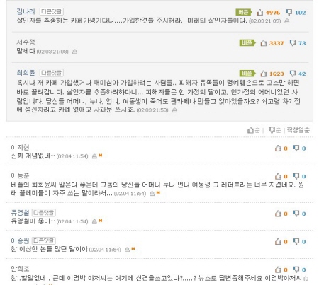 ☞ "카페 회원들, 그렇게 당당하게 주장하고 싶으면 자기 얼굴 공개하라."(콕기콕기, 네이트)