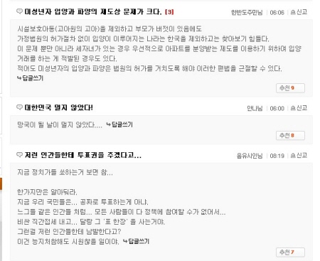 ☞ "군대도 안 가고, 이중범죄네."(ducel1, 네이버)