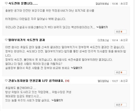 ☞ "YS 때도 경제위기에 사고 많고 그러더니, 한나라당만 집권하면 천심이 도망가나?"(Bogus, 네이트)