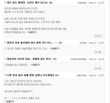 ☞ "좋은 일도 했지만, 말년 수구 지지 논란은 계속 남는다."(미네바르, 다음)