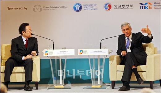 23일 오전 서울 소공동 롯데호텔에서 새 정부 출범 1주년을 기념해 개최된 '글로벌 코리아 2009' 국제학술회의에 참석한 로버트 루빈 미국 전 재무장관(오른쪽)이 기조강연을 마친 후 기자들의 질문에 답하고 있다. '글로벌 코리아 2009' 국제학술회의는 미래기획위원회와 경제·인문사회연구회가 이명박 정부 출범 1주년을 계기로 글로벌 경제위기, 기후변화 등 재편되는 국제질서 속에 한국이 나아가야 할 방향을 논의하기 위해 개최됐다. 독자들의 PICK! 장윤정 모친 "두 번 이혼한 딸, 속상…연하 사위 원해" 딴 여자와 하의 벗고 음란통화...'자칭 일편단심' 남편 돌변 또 임신설...'용준형과 데이트' 현아 모습 어떻길래 "나 퇴사했어, 전업주부 할래"...'책임감 0' 남편 이혼하고 싶어요