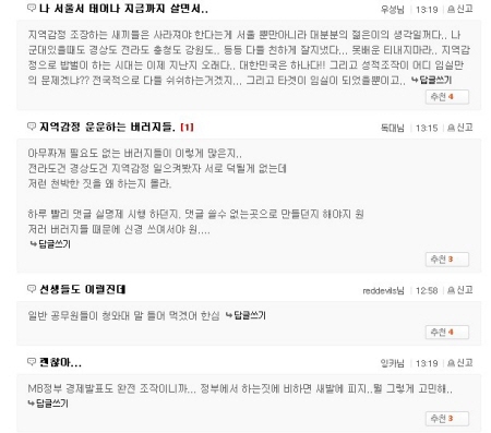 ☞ "교육 시스템이 문젠데 전라도는 왜 욕하는지, 이 나라가 다시 3개로 갈려야 속이 시원하나?"(독대, 다음)