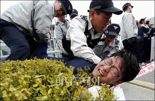 금속노조원들이 '서울모터쇼2009' 개막식이 열리는 3일 오전 고양시 킨텍스(KINTEX)앞에서 차량에 소(牛)피를 뿌리며 강제휴업과 대량해고에 반대하는 퍼포먼스를 펼치다 경찰에 전원연행 되고 있다. 독자들의 PICK! 홍서범·조갑경, '아들 불륜' 사과…"양육비·위자료 빨리 주도록 할 것" 화사, 속옷이 다 보여...과감한 드레스 연출에 '깜짝' 월 700만원 벌어도..."생활비 30만원, 한국인 남편 짠돌이" 이하이 "도끼, 하나뿐인 내 남자" 열애 인정…"두 사람 지금 미국에"