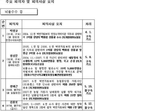 [표]'박연차 게이트' 주요피의자 및 범죄사실-1