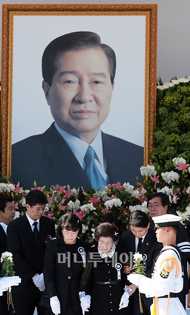 故 김대중 전 대통령 국장 영결식이 엄수된 23일 서울 여의도 국회에서 이희호 여사와 차남 김홍업 전 의원 등 유족들이 헌화한 뒤 돌아서고 있다. 독자들의 PICK! "성소수자 지인과 불륜"…최동석, 박지윤 상간소송 각하에 항소 '환갑' 지석진, 은퇴 후 정계 진출하나…역술가 "정치색은…" 여제자 14번 간음, 숨지자 "내가 당해"…65세 파면 교수 죗값은 故정은우 "형동생 했던 것들에 뒤통수"...지인에 남긴 문자