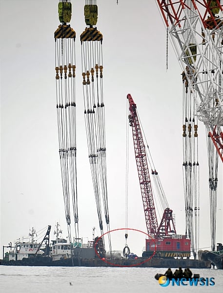 천안함 함수 인양용 체인 연결에 앞서 걸린 3번, 4번 유도용 와이어가 끊어진 22일 오후 인천 옹진군 백령도 콩돌해안에서 본 인양 해상크레인에서 관계자들이 새 와이어를 연결하는 작업을 하고 있다. 독자들의 PICK! "계산적" 주사이모, 박나래 전 매니저 저격에…"뭐가 그리 당당?" "성소수자 지인과 불륜"…최동석, 박지윤 상간소송 각하에 항소 '성범죄' 사촌오빠 결혼, 부모는 쉬쉬..."예비 새언니에 알릴까요" "아빠가 끔찍 성폭행" 친딸 임신시켰다...인면수심 父, 결국