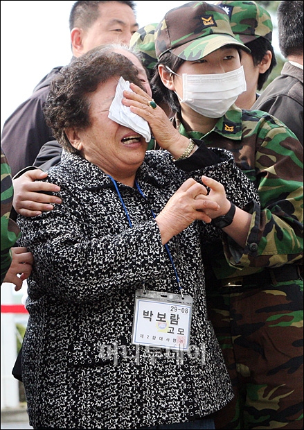 지난 22일 오후 9시20분쯤 침몰한 천안함 연돌에서 발견된 고(故) 박보람 하사의 시신이 유족들이 기다리는 해군 2함대 사령부로 도착했다. 찾지 못할 뻔한 시신을 찾았다는 안도감은 찾아볼 수 없을 정도로 유족들은 오열하고 또 오열했다.