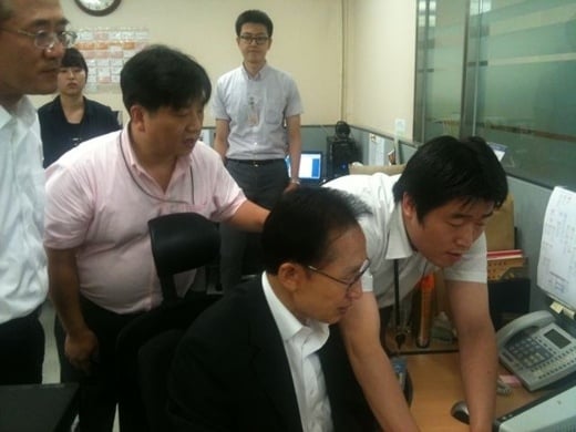 또 "대통령께서 뉴미디어비서관실 방문하셨다가 직원책상에서 트윗 삼매경 인증샷2!"라며 연이서 사진을 올렸다. 현재 이 두 장의 사진은 트위터 상에서 급속도로 퍼져나가고 있다.