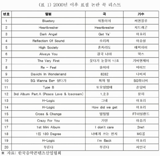 한편 진 의원이 공개한 '2000년 이후 표절 논란 곡 리스트'에는 MC몽의 곡 뿐 아니라 에픽하이, 씨엔블루, 지드래곤, 이효리, 이승철, 왁스, 손담비, 2ne1 등 국내 내로라하는 가수의 곡들이 포함돼 있다.
