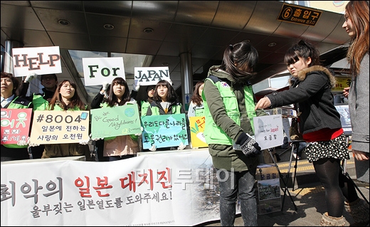 17일 오전 서울시 중구 명동역 앞에서 굿네이버스 주최로 열린 일본 대지진 피해 이재민들을 위한 모금 캠페인서 일본인 관광객들이 성금을 기부하고 있다. 독자들의 PICK! "수영장서 불륜" 증거 잡은 아내 고소 당했다...간통죄 폐지 후 벌어진 일 "여친 있던 바타, 지예은 좋아해"...열애 인정 후 '환승 의혹 글' 확산 "호스트 클럽서 유산 탕진" 여배우 딸, AV 출연하더니...'절도' 체포 닭가슴살로 300억 벌더니…허경환 "작년부터 사업 손 떼" 고백