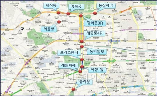 서울경찰에 따르면 시범운영은 광화문 삼거리를 중심으로 내자교차로와 동십자각교차로 구간, 광화문삼거리에서 숭례문 교차로 구간 등 11개 교차로에서 40면의 화살표 3색등이 설치돼 운영될 예정이다.