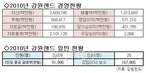 강원랜드가 최근 공개한 '2010년 강원랜드 자체 감사 지적사항' 58건 중 일부 내용이다. '비리랜드'란 별칭이 붙을 정도로 도덕적 해이가 심한 강원랜드에서 횡령을 비롯한 각종 사건이 끊이지 않고 있다.