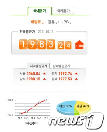 이날 서울지역의 보통휘발유 평균가격도 2061.00원을 기록해 전날의 상승세를 이어갔다.