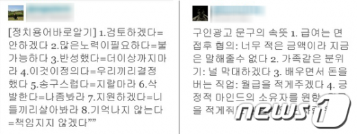 누리꾼 사이에는 '정치용어 바로알기', '구인광고 문구의 속뜻'이라는 글이 큰 관심을 모으고 있다.