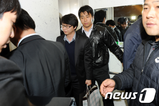 정권 실세 금품 로비 의혹을 수사하고 있는 검찰이 28일 오후 서울 성동구 금호동 이국철 SLS회장 자택에서 압수수색을 마친 뒤 증거물품을 들고 자택을 나서고 있다.