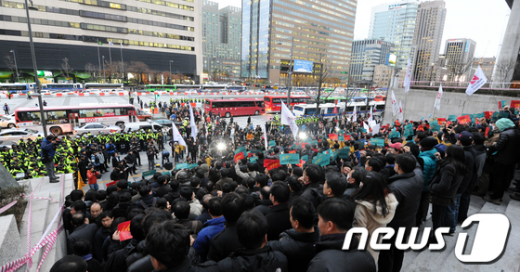 이들은 오후 6시께 집회를 마치고 한미FTA 반대집회에 합류했다.