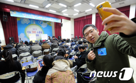 (서울=뉴스1) 박지혜 인턴기자= '서초구 SNS 소통왕 선발대회'가 열린 8일 오전 서울 서초구청 대강당에서 참가한 주민들이 페이스북, 트위터에 게시물을 올리는 미션을 수행하고 있다. 서초구 관계자는 "이번 선발대회는 구민과의 원활한 쌍방향 온라인 소통의 가교역할을 하고 있는 SNS의 활용능력을 높이고, SNS에 대한 구민들의 관심을 유도하기 위해 개최했다"고 밝혔다. <저작권자 뉴스1 코리아, 무단전재 및 재배포 금지> ☞ 뉴스1 바로가기 독자들의 PICK! 명문대 출신 걸그룹 멤버, 무속인 된 사연…"가족 죽는 꿈 꾸더니" 시부모엔 용돈 30만원, 친정은 불가…"네 월급으로 줘" 남편과 갈등 43세 여가수 임신에 "썩은 양수" 충격 댓글...18년 전 발언 '부메랑' '아들 불륜' 조갑경 예능 출연에 전며느리 분노..."난 고통 속에 사는데"