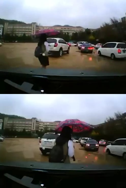 논란의블랙박스 영상에는 한 여고생이 학교 운동장에서 차에 치여 사고를 당하는 장면이 그대로 담겨있다. 우산을 쓰고 차량 앞을 지나던 여고생을 미처 보지 못한 차량은 그대로 앞으로 나아가 여학생을 들이받았다.
