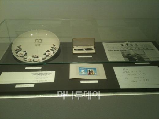 눈길을 끄는 것은 노 전 대통령의 피규어와 함께 전시된 "방북 기념품"들. 북한 문화성에서 남북이 화해 국면을 맞이하던 2007년 10월 3일 노 전 대통령 부부내외에게 보낸 '아리랑' 공연 초대장과 당시 노동신문에 실린 노 전 대통령과 김정일 국방위원장이 악수하는 사진, 그리고 방북당시 천호선 전 청와대 대변인의 여권 등이 전시되어 있다.