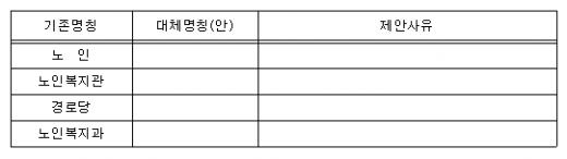 '노인'이라는 명칭뿐만 아니라 '노인복지관', '경로당' 등 '늙을 로(老)'자가 포함된 노인 관련 명칭도 젊고 활동적인 의미를 담는 명칭으로 바꿀 예정이다. 사업을 주관하는 서울시의 '노인복지과' 역시 대체 대상이다.