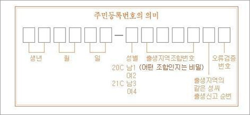 출생지역번호 다음자리 숫자는 출생신고 당일 접수처에 몇 번 째로 신고가 접수됐는지를 알려주는 번호다. 마지막 자리는 오류검증번호를 의미한다. 생년월일을 포함 12개 숫자를 특정한 공식에 대입해 산출된다.