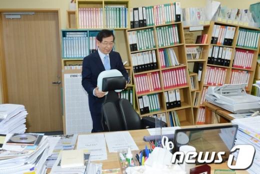 (서울=뉴스1) 이명근 기자 = 박원순 서울시장이 24일 오전 서울시청 신청사 집무실로 출근해 재활용 재료를 이용해 만든 책상을 소개하고 있다. 2012.9.24/뉴스1 <저작권자 뉴스1 코리아, 무단전재 및 재배포 금지> ☞ 뉴스1 바로가기 독자들의 PICK! 부부관계 2년 거부, 성기능 개선제 몰래 먹는 남편…유책 사유 될까 100만원도 못 벌던 개그맨..."수입 1000배" 변호사 된 깜짝 근황 '벌레 바글' 쓰레기집 만든 150㎏ 남편...입덧 아내에 "네가 치워" "제수씨와 잠자리를?" 초강수 질문…'친자확인' 남편, 끝내 결백 입증