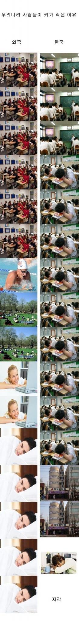 키가 크려면 적당한 운동과 충분한 휴식이 보장돼야 하는데 우리나라 학생들은 하루 종일 책상에 앉아서 공부를 하거나 쪽잠만 잔다는 것이다.