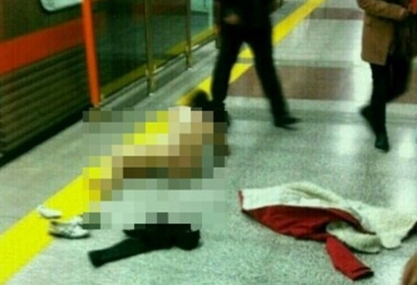 역 관계자에 따르면 사진 속 여성 A씨(22)는 9일 오후 3시30분께 부산지하철 1호선 노포역에서 아무것도 걸치지 않은 채 알몸으로 엎드려 있었다. 그 옆에는 A씨의 것으로 추정되는 속옷, 바지, 코트, 신발 등이 널려져 있었다. 관할 역무원은 시민들의 신고를 받고 바로 출동해 여성의 몸을 담요로 덮고 경찰서로 인계했다. 사진은 역무원들이 오기 전에 찍힌 것으로 추정된다.
