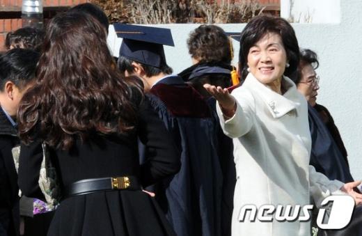 (서울=뉴스1) 허경 기자 = 홍라희 삼성미술관 리움 관장(오른쪽)이 19일 오전 서울 강북구 영훈초등학교에서 열린 손자의 졸업식에 참석해 임세령 대상 상무(왼쪽)와 인사를 나누고 있다. 2013.2.19/뉴스1 <저작권자 뉴스1 코리아, 무단전재 및 재배포 금지> ☞ 뉴스1 바로가기 독자들의 PICK! 윤미래, 뒤늦게 알려진 사망 소식..."긴 여행 떠나" 추성훈, '파격' 누드 화보 공개…"돈 안 받아, ♥야노 시호도 촬영" 동서와 갈등→파혼 2번 아내..."조카는 남편 아이" 의심 충격 "남성 의사가 은밀한 곳 봤잖아" 이혼 선언…산부인과서 난동