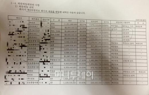 오씨는 진로가 법정관리에 들어갔을 당시 호크아이즈 등 제3자 명의로 채권 4200억원(액면가 기준)어치를 매입한 내역도 제시했다. 그는 "진로가 사들였던 채권은 이미 법원에 신고된 것"이라며 "법원의 인가 없이 개인이 임의로 처리할 수 없다"고 말했다.
